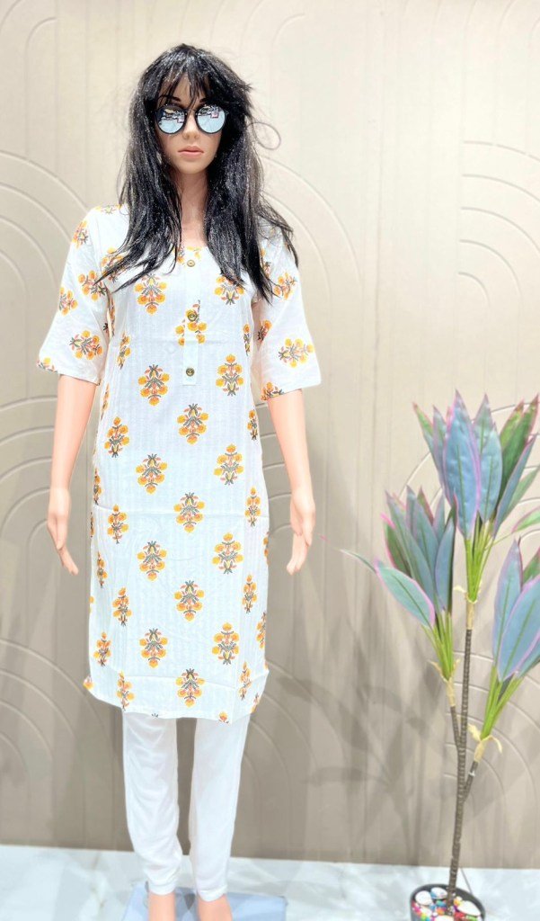 White Beauty Rayon Printed Kurti with Side Pocket And Dupatta Wholesale