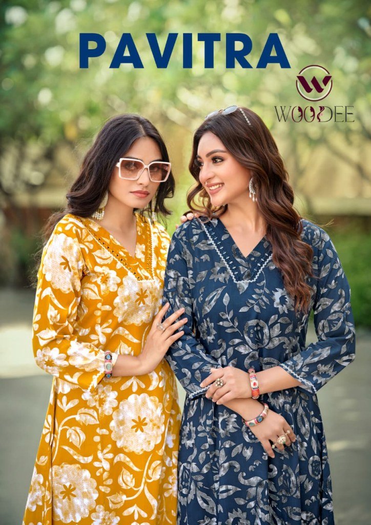Woodee Pavitra Premium A Line Co ord Set in Liva Rayon with Hand Mirror Work And Lace Detailing Wholesale