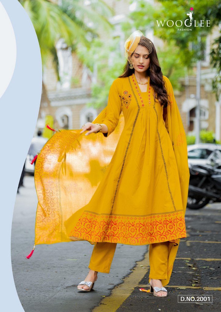 Wooglee Tanya Pure Cotton Flex Print And Threadwork Salwar Set with Mull Cotton Dupatta Wholesale