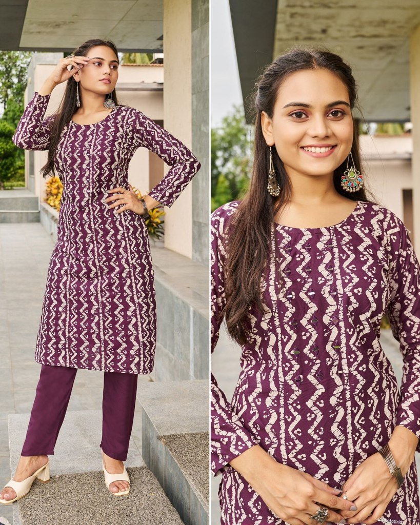 amavi presented sibori vol 1 printed mirror work kurti and pant at wholesale rate, Printed Kurtis can be your go-to for everyday wear. The fabric is easy to maintain and durable