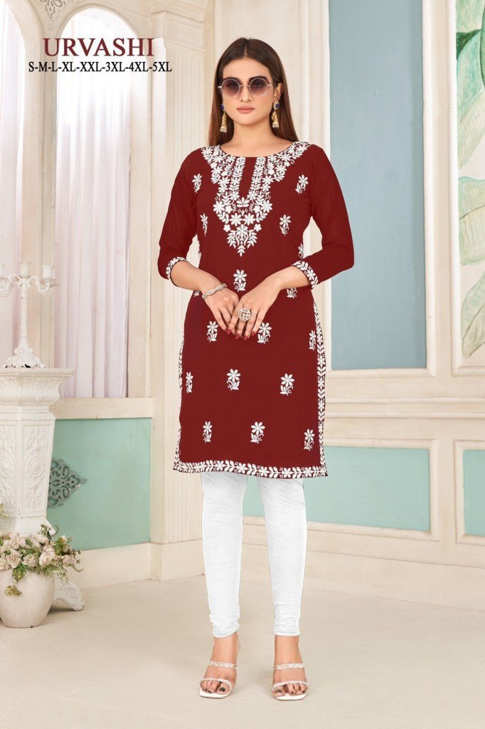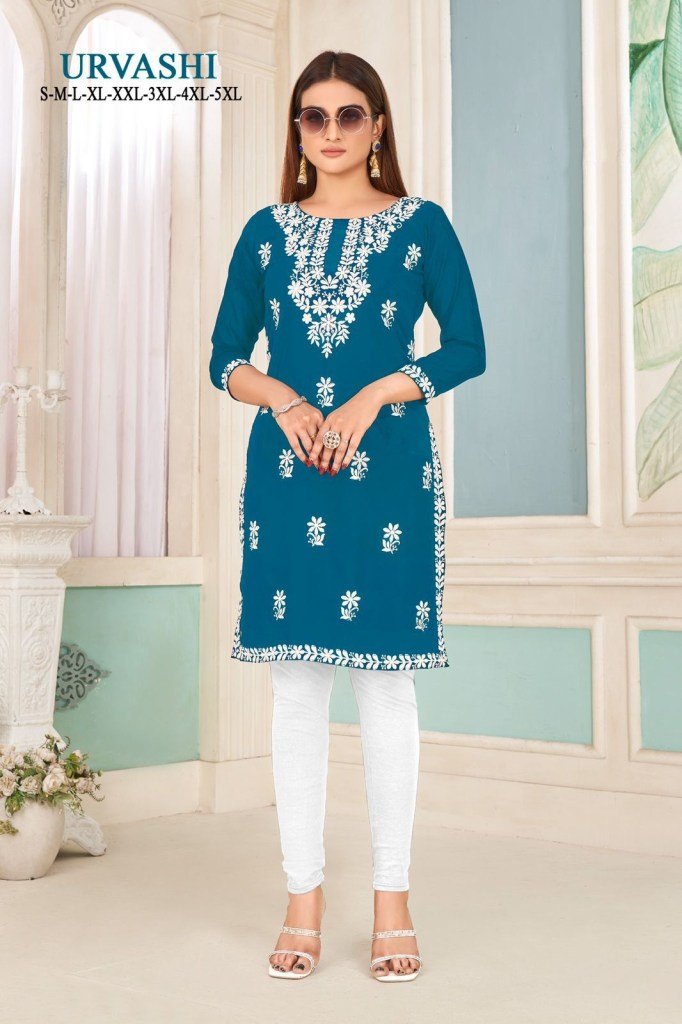 urvashi luanch fancy bombay reyon printed kurti catalogue at amaviexpo